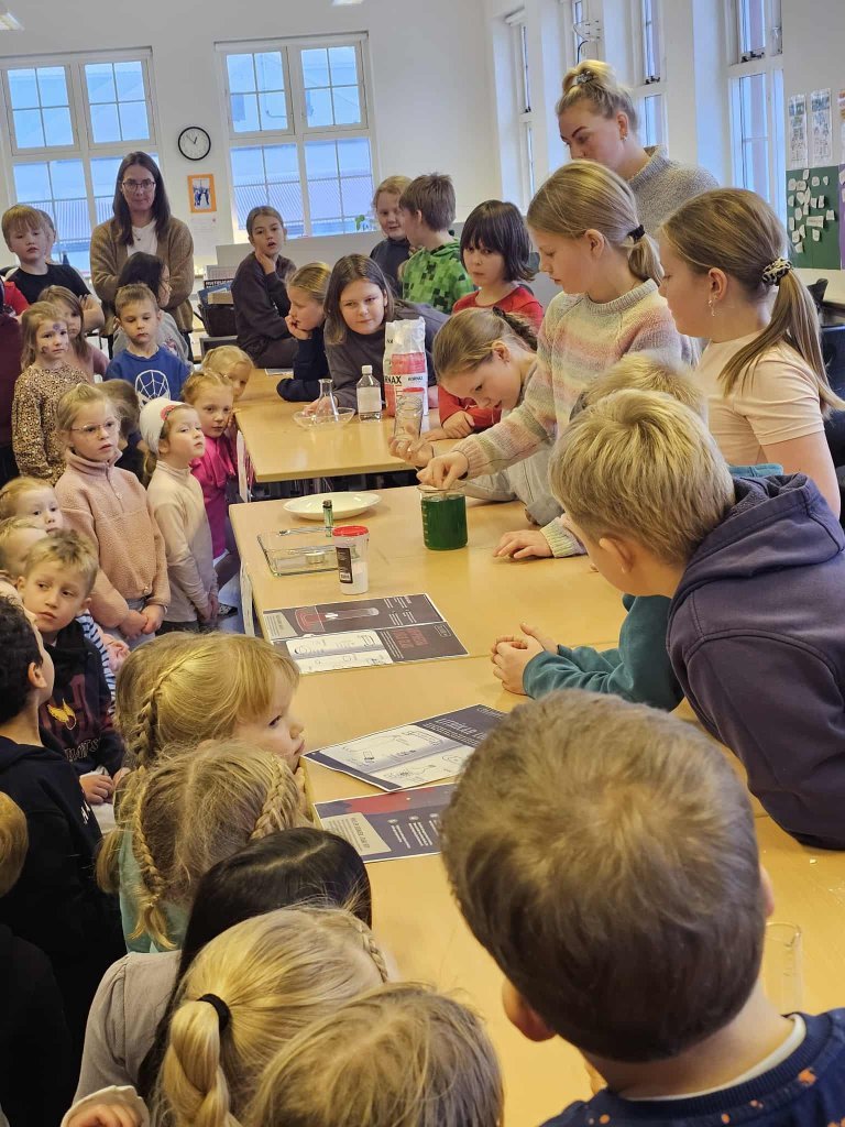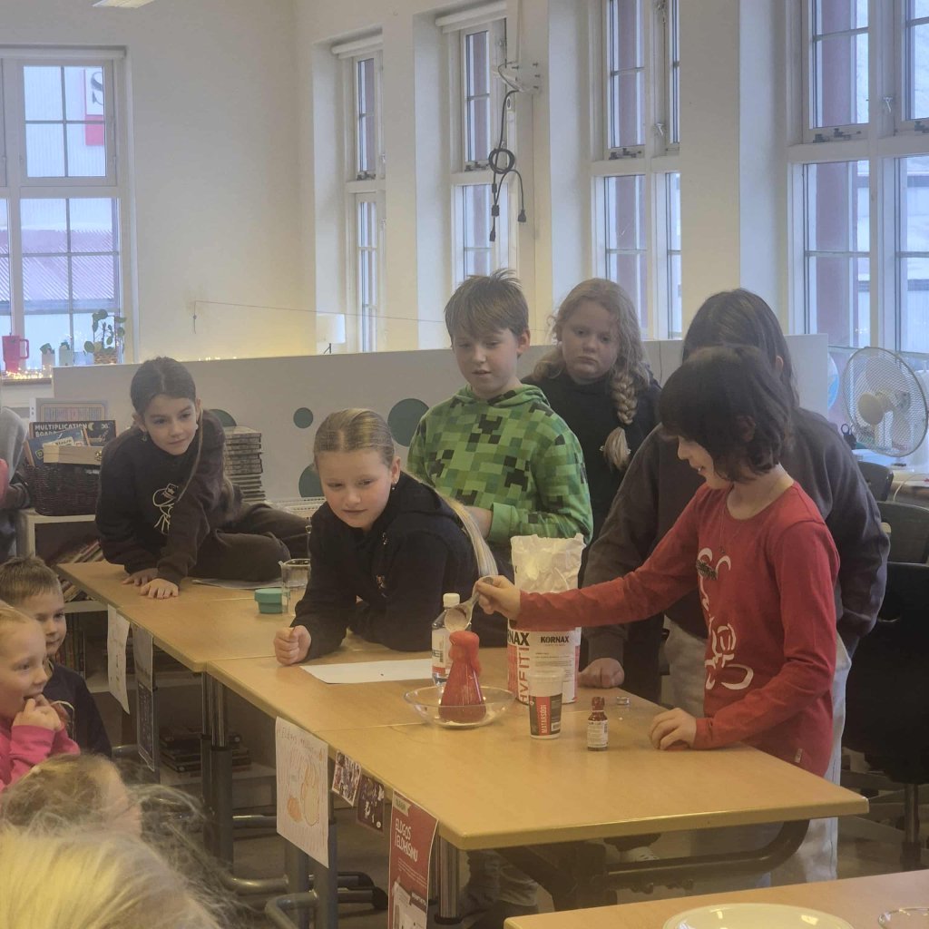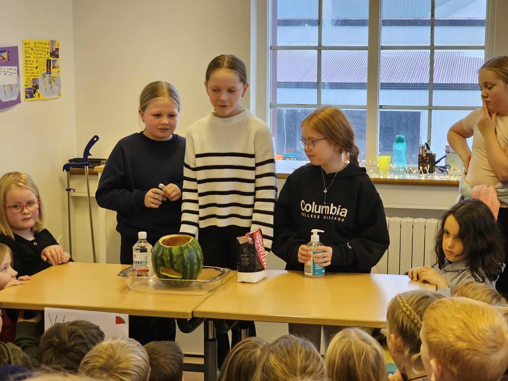 Nemendur í 5. bekk hafa verið að læra um vísindalæsi og þeir ákváðu að bjóða yngri bekkjunum á vísindasýningu. Þeir framkvæmdu tilraunir og voru yngri nemendur mjög áhugasamir og fylgdust spenntir með vísindamönnunum. Frábært framtak hjá nemendum í 5. bekk. Hér fyrir neðan má sjá myndir frá sýningunni og eina upptöku af einni tilrauninni.