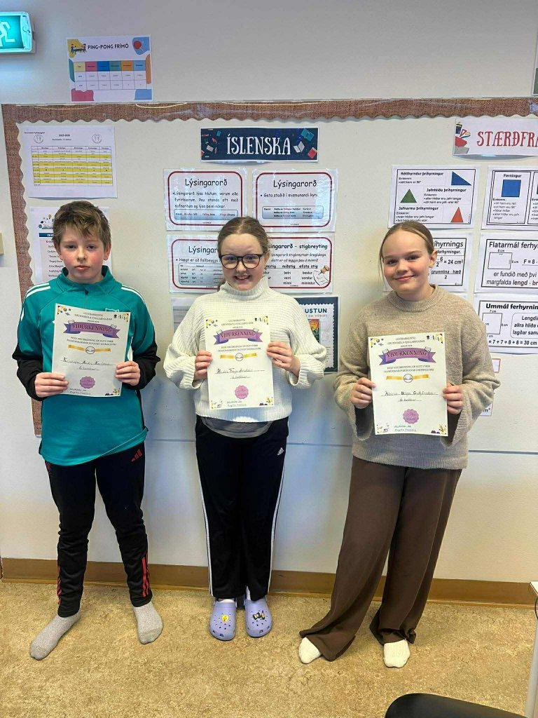 Þrjú efstu sætin í hverjum bekk fengu viðurkenningarskjal fyrir flestar lesnar mínútur heima fyrir. Á bóndadeginum fengu nemendur viðurkenningarskjal á söngsal á Norðurgötu. Þessi keppni er vonandi komin til að vera og verður því árlegur viðburður í Grunnskóla Fjallabyggðar. Hugsunin er að aðstoða nemendur að koma sér í gang eftir jólafríið svo þeim gangi vel í lesfimisprófi sem er alltaf í janúar.