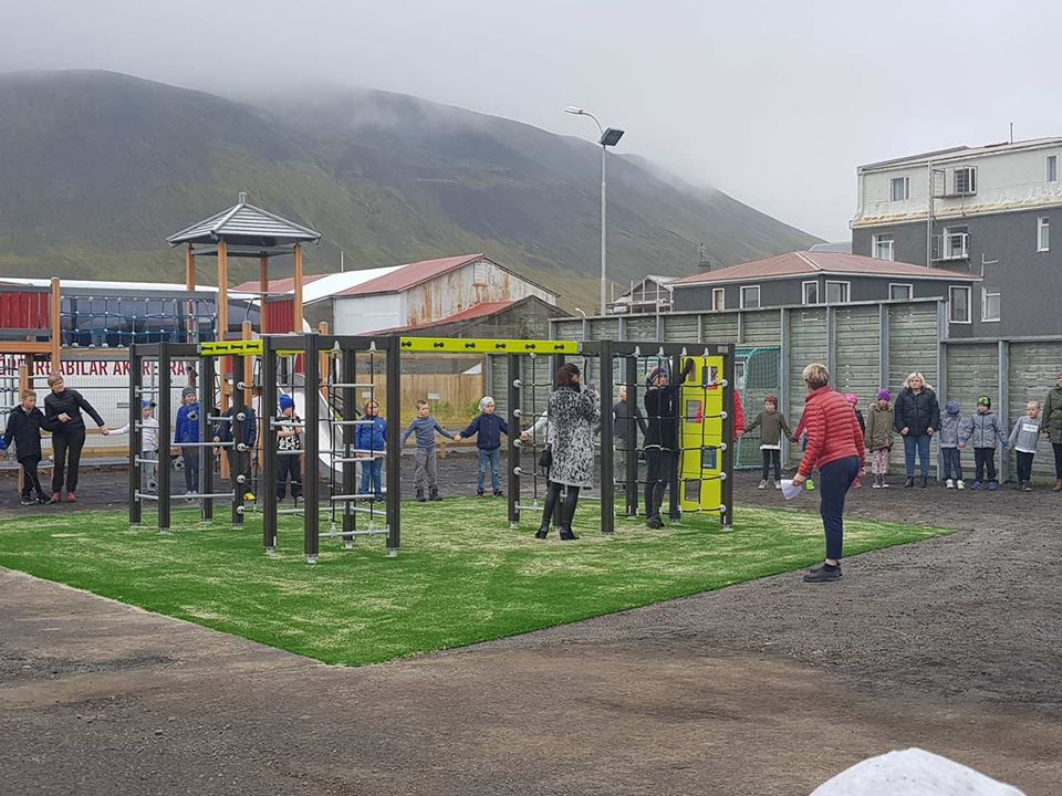 Nemendur og starfsfólk Grunnskólans við Norðurgötu á Siglufirði glöddust og sameinuðust í stórum vinahring á skólalóðinni í dag 8. september þegar nýtt leiktæki var formlega tekið í notkun. Þetta skemmtilega leiktæki er minningargjöf um Svölu Dís Guðmundsdóttur, góðan félaga og vinkonu. Krakkarnir eiga eftir að njóta þessarar góðu gjafar í framtíðinni. Við þökkum fjölskyldu Svölu Dísar kærlega fyrir.